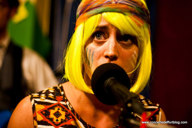 The explosion of sound began with "Wooden Lover" from their album Recidivist - an almost steampunk-like song that seemed to blend Victorian piano and vocal melody backed by powerful rock 'n' roll. As they performed songs from the The Bonedale EP, I was amazed by the creative use of atypical instruments, and how they all seamlessly worked together. Despite the large array of instruments, nothing was ever forced in there, and every instrument had a chance to shine. I loved the melodica and electric guitar featured in "Infancy Til' Death". I loved the violin solo at the beginning of "Tiny Terrors". The marimba was an instant crowd favorite, especially in the spontaneous interlude performance of "Under The Sea" from The Little Mermaid. I really didn't want them to stop playing, but alas bass trouble reared its ugly head again when a broken string forced an earlier end to their set. Hopefully they had enough good video footage to work with because this band needs to be seen to be believed. You can get the chance to see these guys this Wednesday, May 9 at the Hi-Dive, performing with Suckers and Young Man. I strongly recommend attending this show!